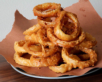 golden fried beer battered onion rings served with a side of house-made fry sauce.