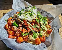 a basket of locally made white cheddar cheese curds, hand dipped in our house beer-batter made with our own mexican lager. fried golden, served with house fry sauce.
