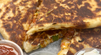 flour tortilla, shredded cheese and house-made pico de gallo. served with sour cream, fresh salsa and fresh guacamole.